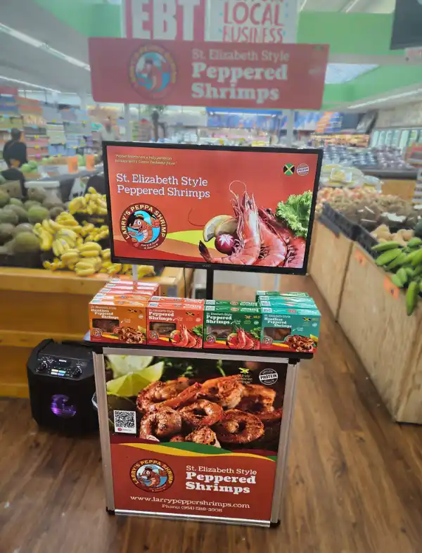 The authentic Jamaican Style, our Mild and Spicy ready to eat Larry’s Peppa Shrimp.